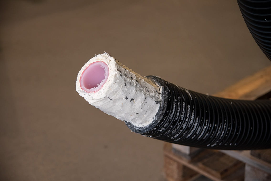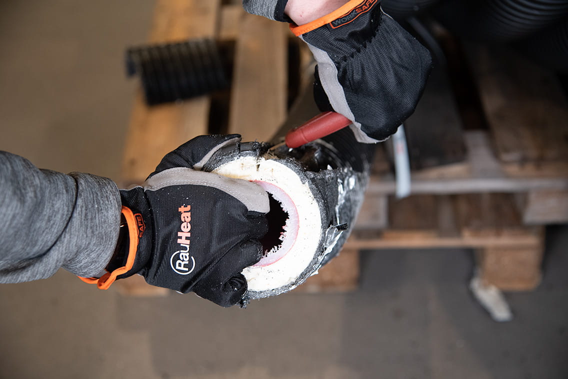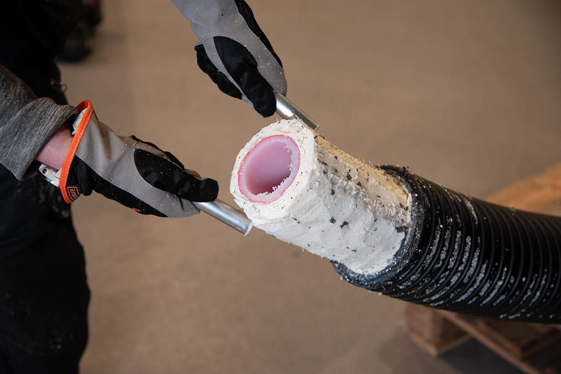 RauHeat PexFlex PLUS kulvert levereras med ett verktyg som förenklar borttagandet av PUR-isoleringen från mediaröret.